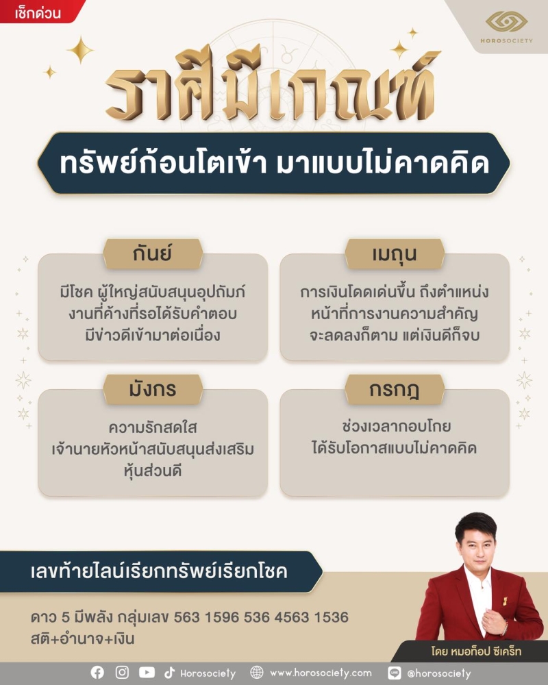 วันที่ 3 ต.ค. 68 หมอท็อป ซีเคร็ท เปิด 4 ราศี ด้วยพลังดาวพลังพฤหัสบดี จรเป็นมหาอุจจ์ ส่งผลดีแบบเปลี่ยนฟ้าเปลี่ยนดิน กลับมาดีขึ้นอย่างเห็นได้ชัด บรรยากาศทุกอย่างเริ่มสดใส และส่งผลดีมากกับราศีต่อไปนี้ ที่เปลี่ยนจากที่แย่กับกลายมาเป็นดี