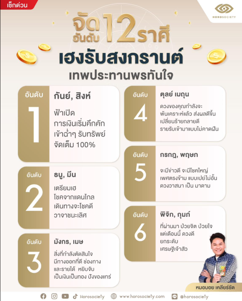เมื่อวันที่ 12 เม.ย. 67 ที่ผ่านมา หมอบอย เคลียร์ชัด นักดูดวงและราศี เปิดดวงดวงชะตา การจัดอันดับ 12 ราศี เฮงรับสงกรานต์ เทพประทานพรทันใจ