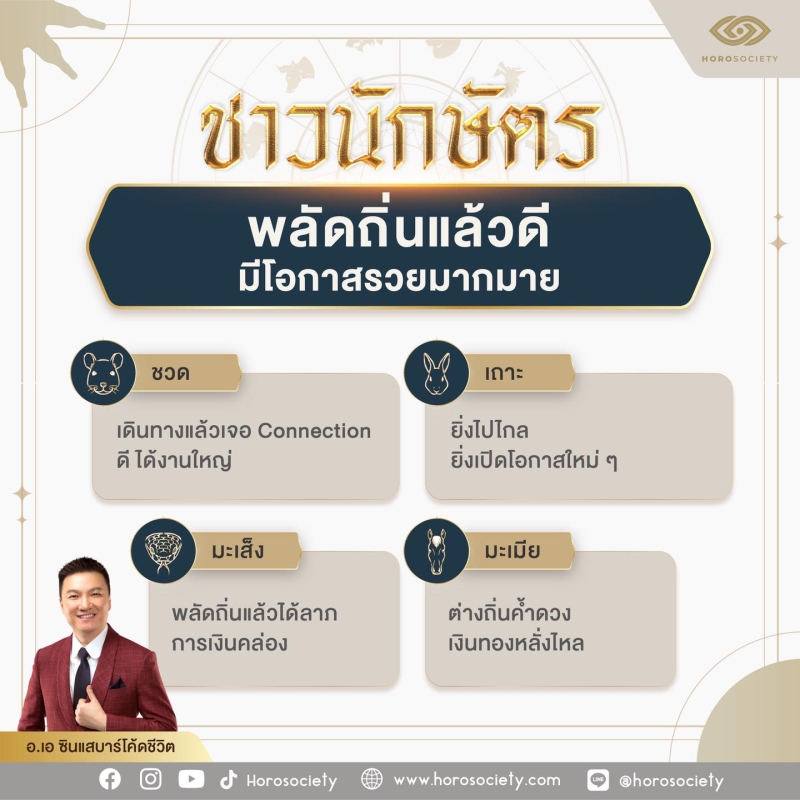วันที่ 15 ต.ค. 68 ทางเพจ Horosociety จาก อาจารย์เอ ซินแสบาร์โค้ดชีวิต เผย 4 นักกษัตริย์ ย้ายถิ่นฐาน เดินทางไกล หรือทำงานต่างแดน กลับกลายเป็น โอกาสทอง ที่เปิดประตูสู่ความมั่งคั่ง
