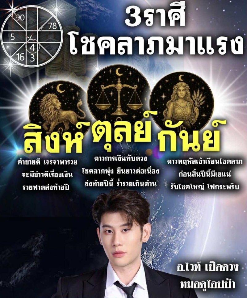 โดย อาจารย์ไวท์ หมอดูโอปป้า เผยว่า ดวงของทั้ง 3 ราศีต่อไปนี้ กำลังเข้าสู่ช่วงรุ่งสุดขีด ดาวการเงิน และดาวโชคลาภโคจรหนุนเต็มพลัง ส่งผลให้การเจรจาธุรกิจราบรื่น เงินทองหลั่งไหล และมีแนวโน้มได้ข่าวดีเรื่องผลตอบแทน หรือ โชคใหญ่ไม่คาดฝัน