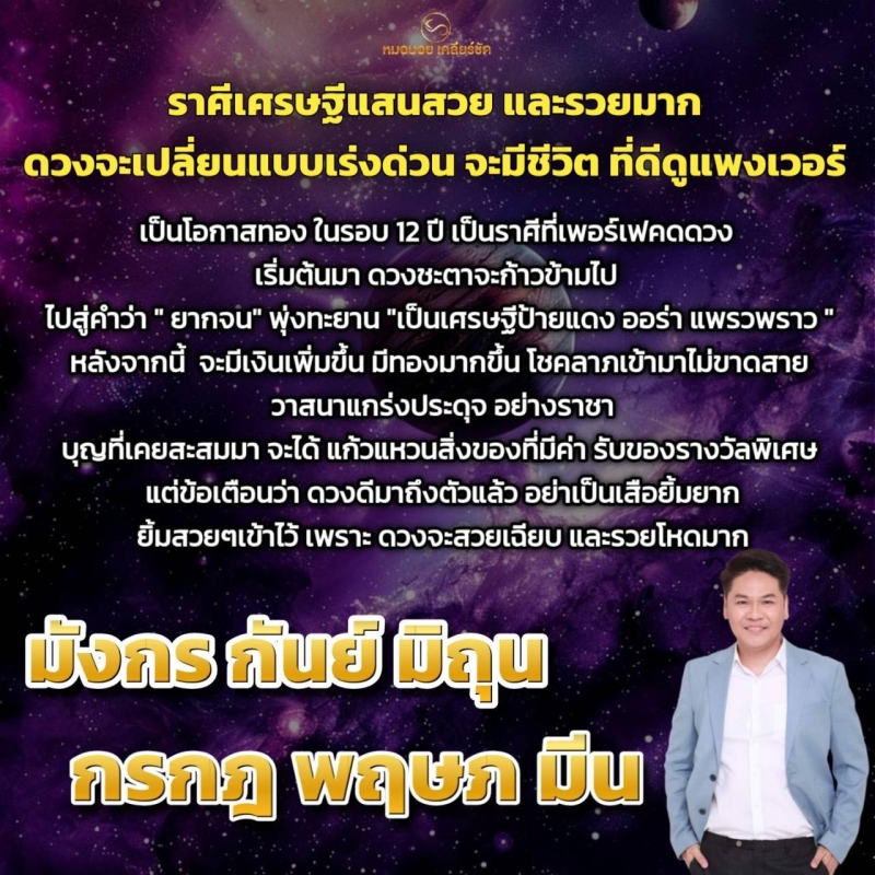 สุดนักพยากรณ์ดังอย่าง หมอบอย เคลียร์ชัด เผย 6 ราศี เศรษฐีแสนสวย และรวยมาก ดวงจะเปลี่ยนแบบเร่งด่วน จะมีชีวิตที่ดีดูแพงเวอร์ ดวงจะเปลี่ยนแบบเร่งด่วน เป็นโอกาสทองในรอบ 12 ปี ดวงชะตาจะก้าวข้ามไป สู่คำว่า ยากจน พุ่งทะยานเป็นเศรษฐีป้ายแดง