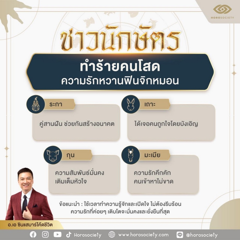 เมื่อวันที่ 21 พ.ย. 68 ทางเพจ Horosociety เผย อาจารย์ เอซินแสบาร์โค้ด ได้ทำนายดวงความรัก นักษัตรเหล่านี้จะสดใส มีโอกาสได้คนรู้ใจ หรือพัฒนาความสัมพันธ์แบบจริงจัง บรรยากาศโรแมนติก หวานจนคนโสดรอบข้างอิจฉา