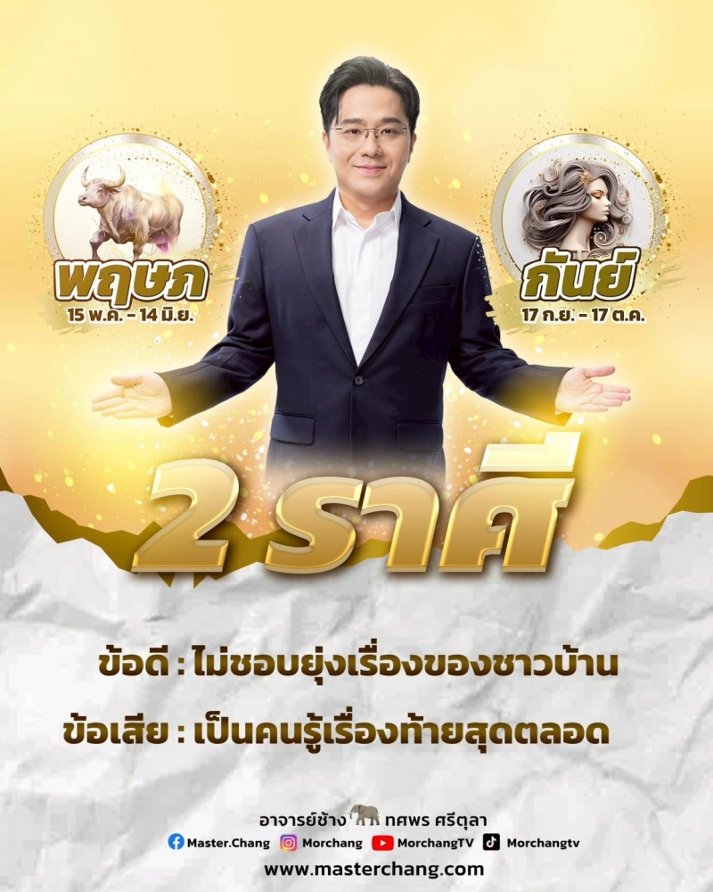 ล่าสุดทางด้านนักพยากรณ์ชื่อดังอย่าง หมอช้าง ทศพร ศรีตุลา ได้ออกมาทำนายดวง 2 ราศี ที่ไม่ชอบยุ่งเรื่องของชาวบ้าน ได้แก่