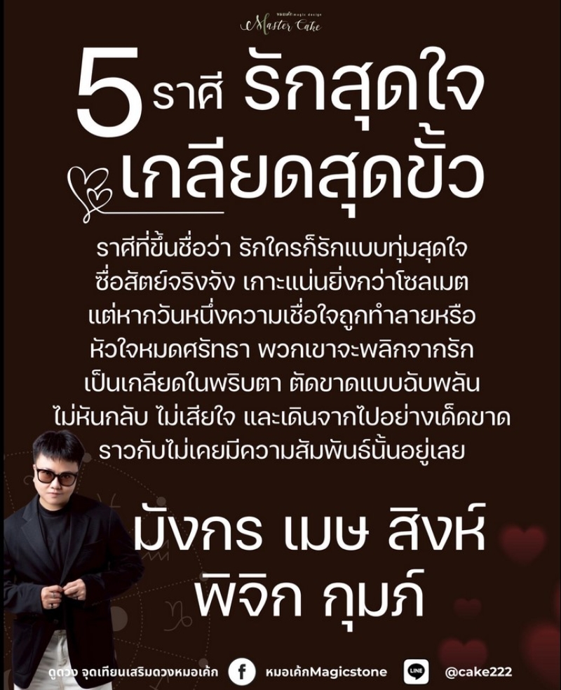 วันที่ 10 ธ.ค. 68 ทาง หมอเค้กดลบันดาล เผย 5 ราศีรักจริงรักแรง แต่ถ้าหมดใจขึ้นมา…พวกเขาจะตัดขาดแบบฉับพลัน เดินออกไปอย่างสง่างามราวกับไม่เคยมีใครอยู่ในเรื่องราวนั้นมาก่อน พิจิก เมษ สิงห์ มังกร กุมภ์ ของจริงเรื่องรัก และของแท้เรื่องหักดิบ.