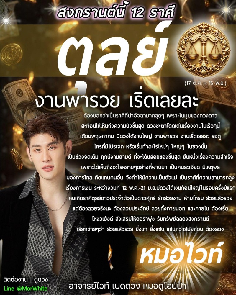 เรียกได้ว่า สำหรับคนเกิดราศีตุลย์ (17 ต.ค.-15 พ.ย.) สงกรานต์นี้ มีดวงปังเรื่องงานสุดๆ