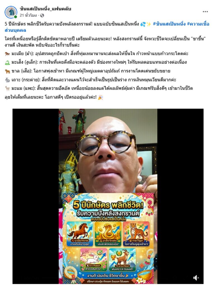 วันที่ 10 เม.ย .69 คนดวงดีเตรียมรับความปัง ซินแสเป็นหนึ่ง โพสต์ถึงดวงชะตารับเทศกาลสงกรานต์ที่จะถึงไม่กี่วันนี้ด้วยว่า “5 ปีนักษัตร พลิกชีวิตรับความปังหลังสงกรานต์! ใครที่เหนื่อยหรือรู้สึกติดขัดมาหลายปี เตรียมตัวเลยหลังสงกรานต์นี้ จังหวะชีวิตจะเปลี่ยนเป็น “ขาขึ้น” งานดี เงินสะพัด หยิบจับอะไรก็ราบรื่นค่ะ”