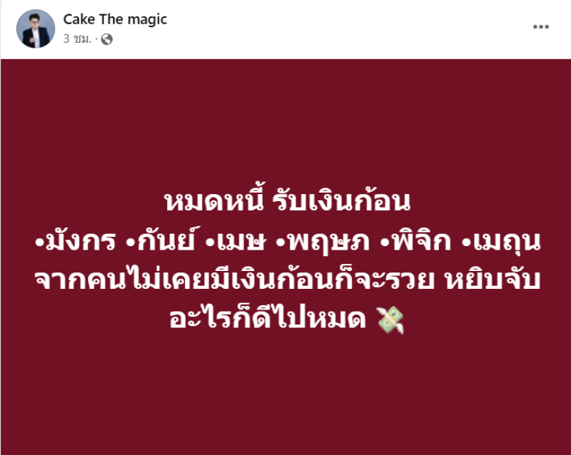 วันที่ 28 พ.ค. 67 ทางหมอดูชื่อดัง อย่าง หมอเค้ก Cake The Magic นักพยากรณ์ ได้ทำนายดวงชะตา 6 ราศี หมดหนี้ รับเงินก้อน