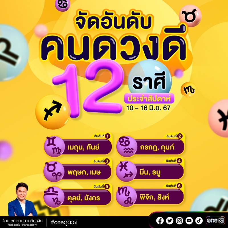 เมื่อวันที่ 9 มิ.ย. 67 ที่ผ่านมา ทางเพจ Horosociety หมอบอย เคลียร์ชัด นักดูดวงและราศี โดยได้จัดอันดับคนดวงดี 12 ราศี ประจำสัปดาห์ที่ 10 – 16 มิถุนายน 2567 มาดูดวงกันว่าราศีของคุณครองตำแหน่งนัมเบอร์วันหรือเปล่า