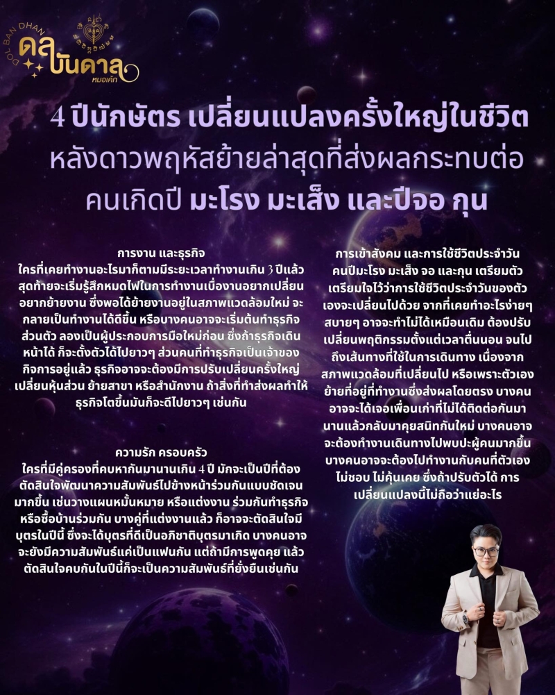 4 ปีนักษัตร เปลี่ยนแปลงครั้งใหญ่ในชีวิต หลังดาวพฤหัสย้ายล่าสุด โดยส่งผลกระทบต่อคนที่เกิดในปีมะโรง, ปีมะเส็ง ปีจอ และปีกุน การงานและธุรกิจ