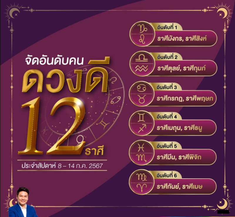 วันที่ 8 ก.ค. 67 ทางเพจ Horosociety หมอบอย เคลียร์ชัด นักดูดวงและราศี โดยได้จัดอันดับคนดวงดี 12 ราศี ประจำสัปดาห์ 8 - 14 กรกฎาคม 2567 ดวงชะตาจะเปลี่ยนแปลงไปทางไหนบ้างไปดูกันเลย