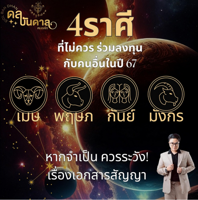 หน้าแรก ไลฟ์สไตล์ ดูดวง ดูดวง หมอเค้ก เตือนระวัง ราศีเมษ พฤษภ กันย์ มังกร 8 ก.ค. 2567 เวลา 14:32 น. A- | A+ เพจ Cake The magic ของ หมอเค้ก เปิดคำทำนายระบุ 4 ราศี ที่ไม่ควรร่วมลงทุนกับคนอื่นในปี 67 หากจำเป็น ควรระวัง เรื่องเอกสารสัญญา สำหรับ 4 ราศีประกอบด้วย ราศีเมษ ราศีพฤษภ ราศีกันย์ ราศีมังกร ABOUT THE AUTHOR bee ทีมข่าว Siam News