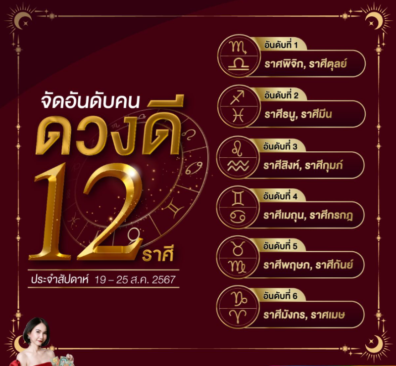 เมื่อวันที่ 19 ส.ค. 67 ที่ผ่านมา ทางเพงดัง Horosociety หมอเชอร์ เป๊ะเว่อร์ นักโหราศาสตร์ชื่อดังและดูดวง ได้จัดอันดับคนดวงดี 12 ราศี ประจำสัปดาห์ 19 - 25 สิงหาคม 2567
