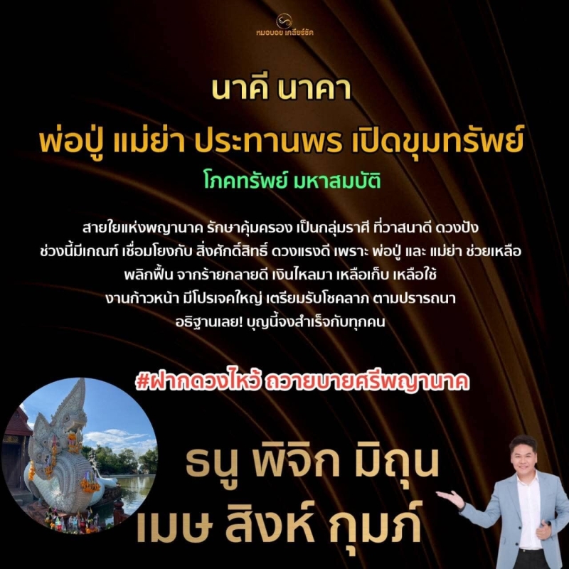 จากกรณี หมอบอย เคลียร์ชัด เผยในเพจถึงดวงชะตาราศี พ่อปู่แม่ย่าประทานพร เปิดขุมทรัพย์ โภคทรัพย์ มหาสมบัติ สายใยแห่งพญานาค รักษาคุ้มครอง เป็นกลุ่มราศีที่วาสนาดี ดวงปัง ช่วงนี้มีเกณฑ์เชื่อมโยงกับสิ่งศักดิ์สิทธิ์ ดวงแรงดี เพราะพ่อปู่และแม่ย่าช่วยเหลือ พลิกฟื้นจากร้ายกลายเป็นดี เงินไหลมา เหลือเก็บเหลือใช้ งานก้าวหน้า มีโปรเจคใหญ่ เตรียมรับโชคลาภ ตามปรารถนา