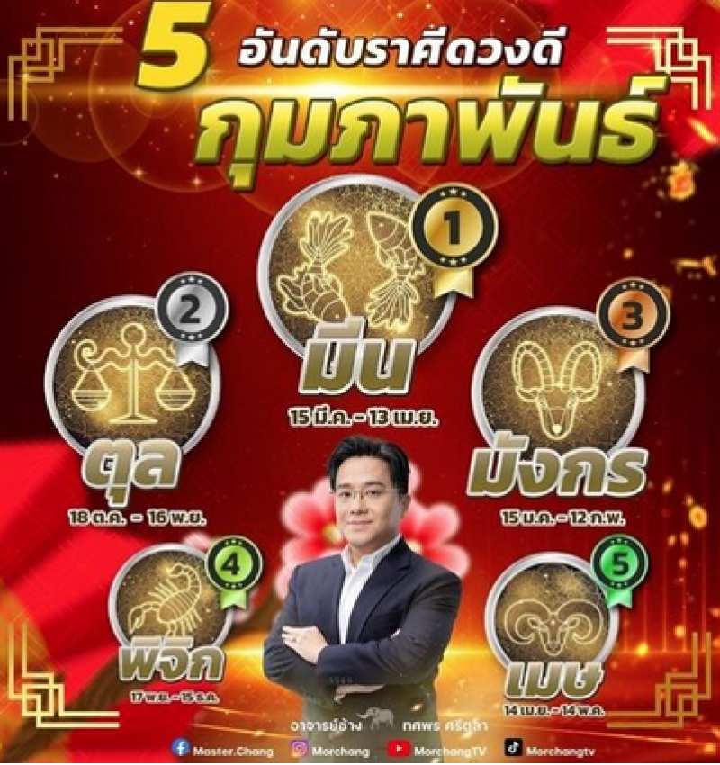 จากกรณี หมอช้าง ทศพร ศรีตุลา โพสต์ดวงชะตาราศีใหม่ของเดือนกุมภาพันธ์ 2567 ทั้ง 12 ราศี ใครดวงดีสุดอันดับราศีดวงดีเดือนกุมภาพันธ์ ได้แก่