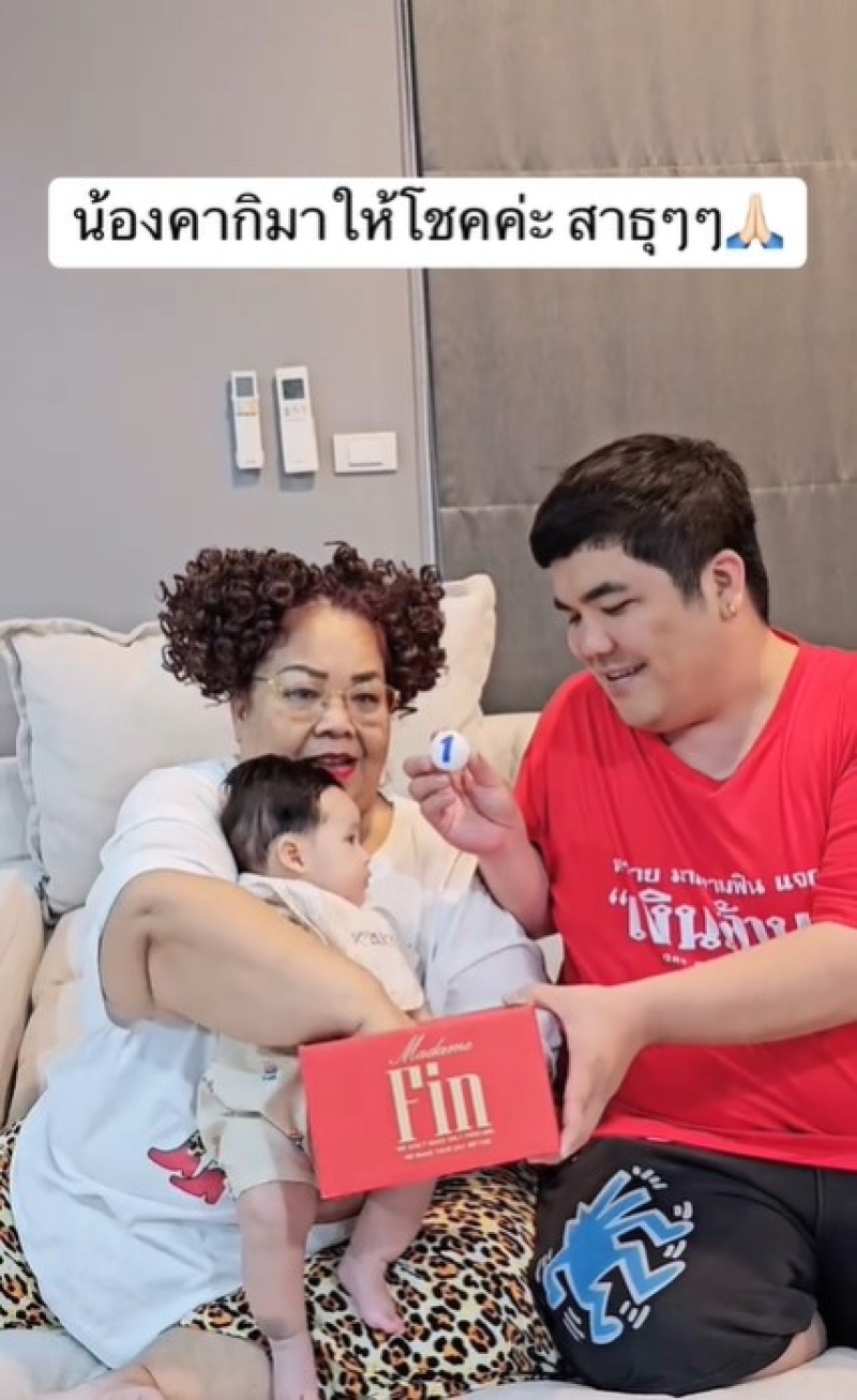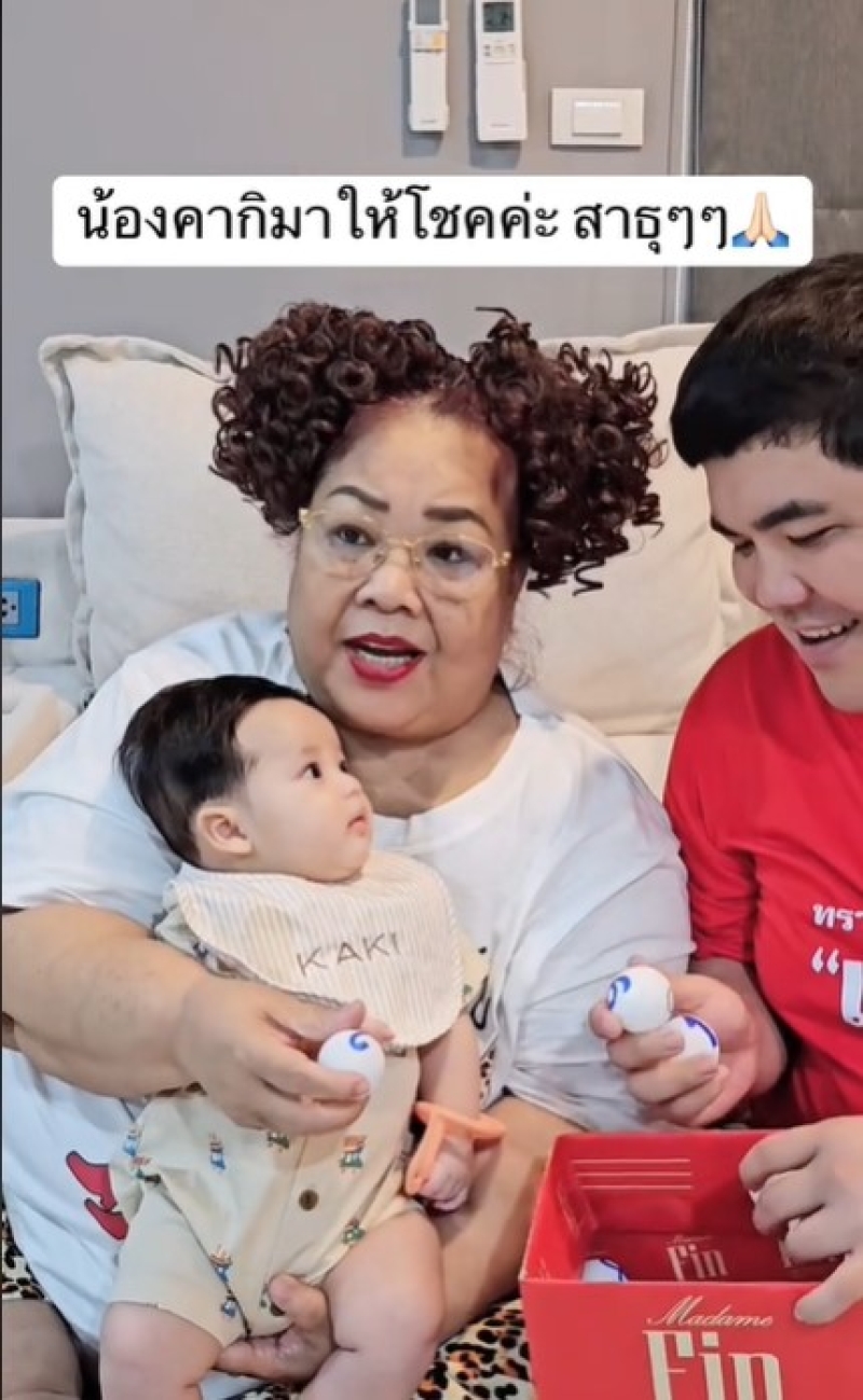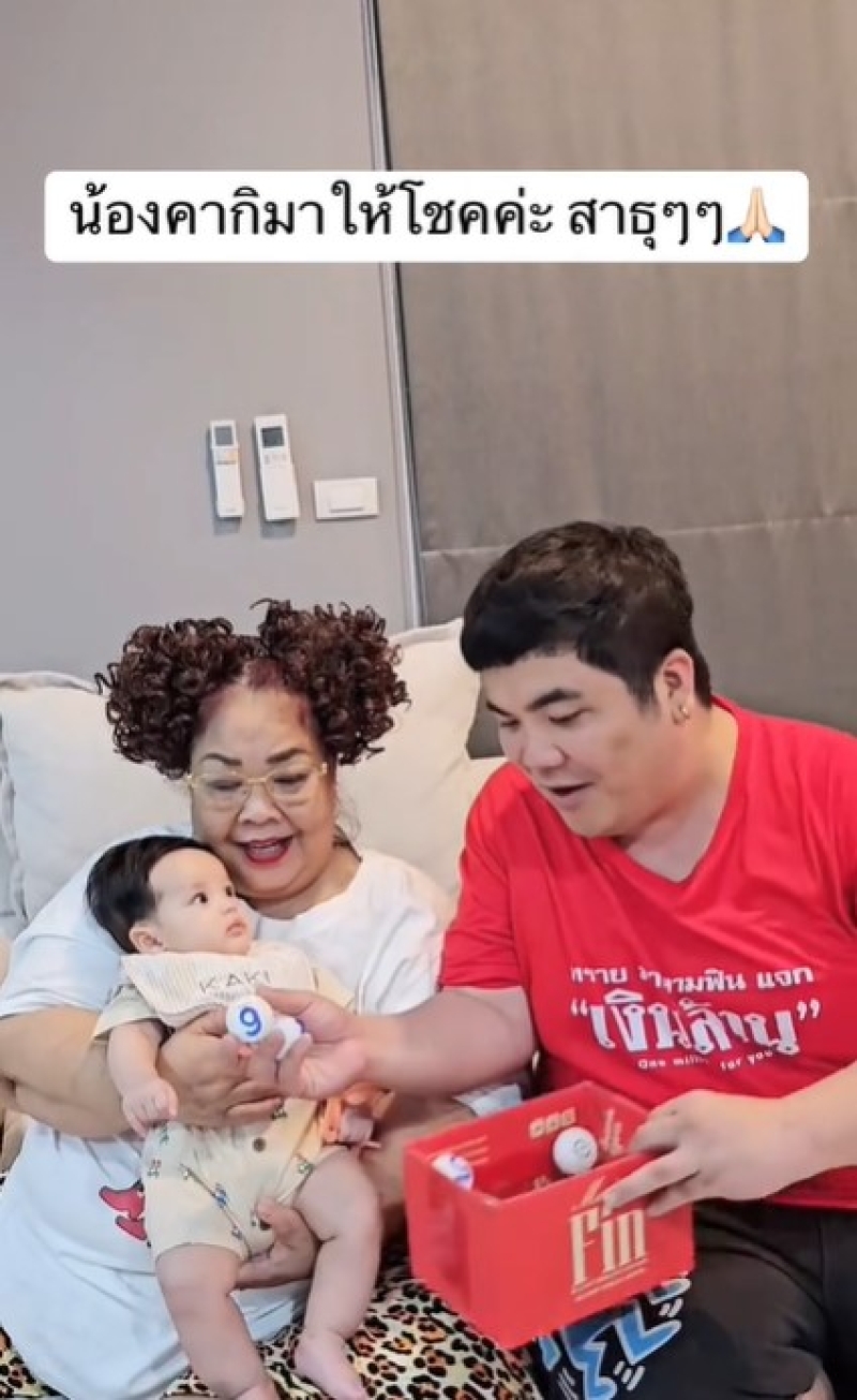 โดยในคลิปที่ก่อน น้องคากิ จะหยิบเลข ย่าเปิ้ล ก็บอกหลานชายว่า ช่วยหน่อยนะงวดนี้ ช่วยให้คนยากคนจนถูกหวยกันนะคะ แล้ว น้องคากิ ก็จับเลขปิงปองมาได้เป็นเลข 169