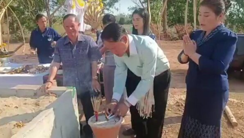 นายชวนินทร์ กล่าวว่า หลังจากมีพิธีบวงสรวงและวางศิลาฤกษ์วันที่ 12 ก.พ.67 วันนี้จึงได้นำแก้วแหวนอิฐเงินทอง และแผ่นวางศิลาฤกษ์ออกจากหลุม เพื่อเริ่มการก่อสร้างเป็นวันแรก หลังจากมีผู้บริจาคสมทบสร้างได้ยอดเงินเบื้องต้น 59,252 บาท จากงบประมาณสร้างที่ตั้งไว้ 5.7 ล้านบาท