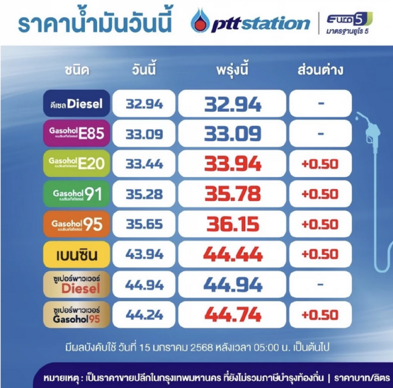 ราคาน้ำมันพรุ่งนี้2568 (19 ม.ค.) ปตท. บางจาก อัปเดตราคาล่าสุด ทั้งชนิดเบนซิน แก๊สโซฮอล์ และดีเซล