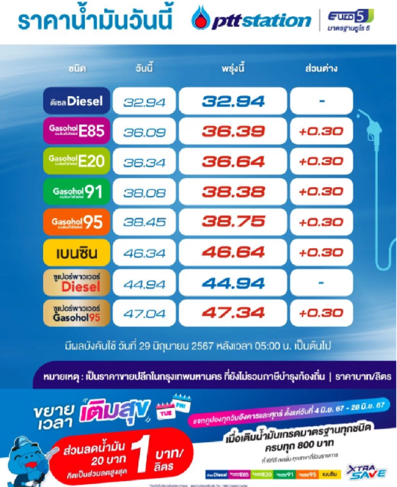 -แก๊สโซฮอล์ 95 ลิตรละ 38.75 บาท