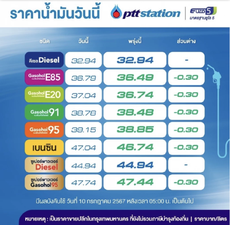 -แก๊สโซฮอล์ 95 ลิตรละ 38.85 บาท