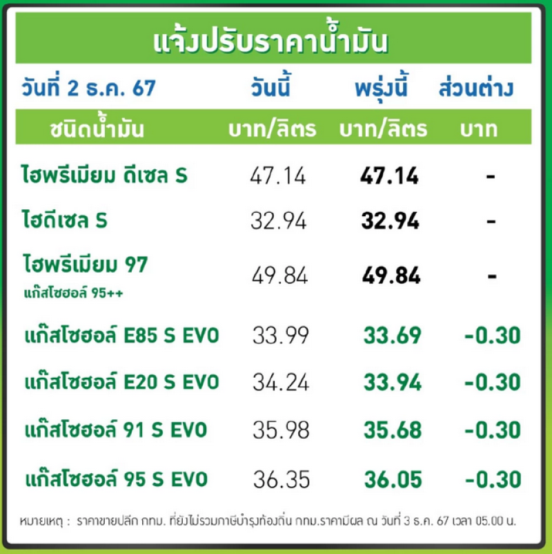 ราคาน้ำมันพรุ่งนี้2567 (9 ธ.ค.) บางจาก ปตท. อัปเดตราคาล่าสุดทั้งชนิดเบนซิน แก๊สโซฮอล์ และดีเซล