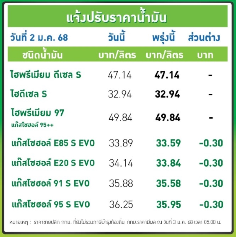 ไฮดีเซล S ลิตรละ 32.94 บาท (บางจาก)