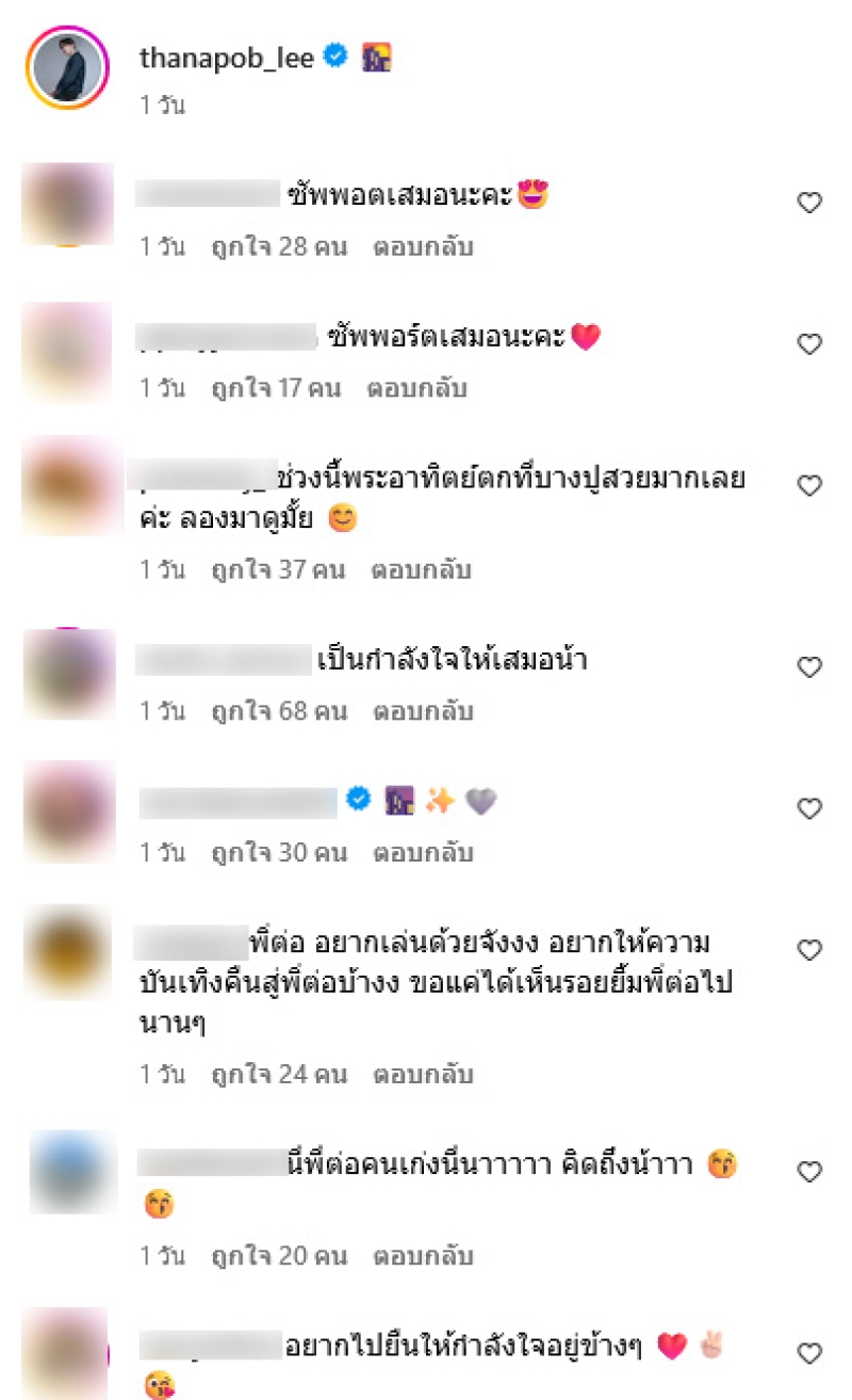 ล่าสุด ต่อ ธนภพ ได้ออกมาเคลื่อนไหวล่าสุดหลังประกาศเลิกแฟนสาวผ่านทางอินสตาแกรมthanapob_lee โดยโพสต์ภาพสื่ออารมณ์ พร้อมแคปชั่น อิโมจิแสงอาทิตย์ตกกระทบตึกสูง ท่ามกลางชาวเน็ตต่างเข้ามาคอมเมนต์ส่งกำลังใจกันอย่างมาก