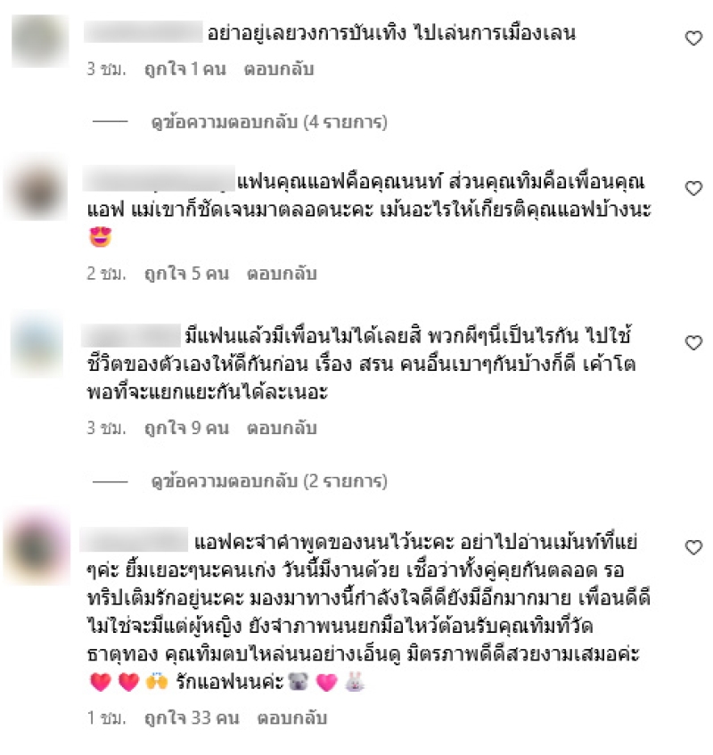 ทั้งนี้เมื่อ แอฟ ทักษอร ได้โพสต์คลิปลงไปต่างมีคอมเมนต์ดราม่าทันที เพราะมี ทิม พิธา ที่พาลูกสาวไปเที่ยวเล่นกับ น้องปีใหม่ ด้วยกัน แต่ทางด้านแฟนหนุ่ม แอฟ อย่าง นนกุล ยังได้เข้ามาคอมเมนต์อิโมจิปรบมือพร้อมรูปหัวใจอีกด้วย สำหรับ แอฟ และ ทิม ชัดเจนตั้งแต่แรกว่าเป็นเพื่อนกันและลูกสาวก็เป็นเพื่อนกันด้วย