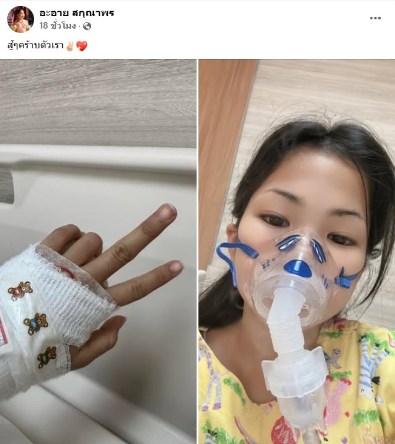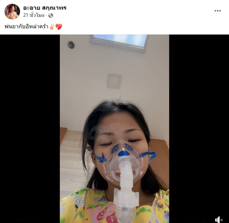 "อ๊ะอายเจอฝุ่นหน้าเวที จึงทำให้มีอาการไอ แต่จริงๆแล้ว ไอทุกคน ศิลปินแทบทุกคนป่วย กันหมด รวมถึงพ่อนกด้วยเจ็บคอมากๆ สะเลด มีดินสีดำติดเต็มไปหมด เนื่องจากที่ติดตั้งเวที เป็นดินทรายดินแดง เวลาคนเต้นก็จะเกิดฝุ่นมา หน้าเวที ซึ่งเราร้องเพลงมันต้องหายใจเข้าให้ เต็มปอดหลีกเลี่ยงลำบากมาก สาเหตุนี้จึงทำให้ ลูกไอต่อเนื่องมา 4-5 วัน แต่ไม่มีไข้ ลูกบ่นว่าไอ จนนอนไม่หลับพ่อเลยพามาตรวจที่โรงพยาบาล กรุงเทพอุดร จึงได้พบว่าปอดมีฟ่าเยอะ นั่นคือ ปอดอักเสพ