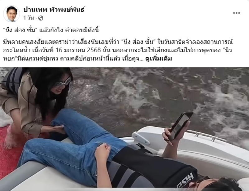 จากก่อนหน้านั้น ที่ได้มีชาวเน็ตต่างสงสัย และ ตั้งคำถามว่าเสียงใครกันที่มานับ 1 2 3 ให้ นิวหยก สุพรรณิการ์ นพรัตน์ มิสแกรนด์ชุมพร 2025 ออกตัวโดดลงแม่น้ำเจ้าพระยา หลังสวมบทเป็นอดีตนางเอกดัง แตงโม นิดา จำลองเหตุการณ์ตกเรือนั้นใช่เสียงของดาราสาวผู้ล่วงลับจริงหรือไม่