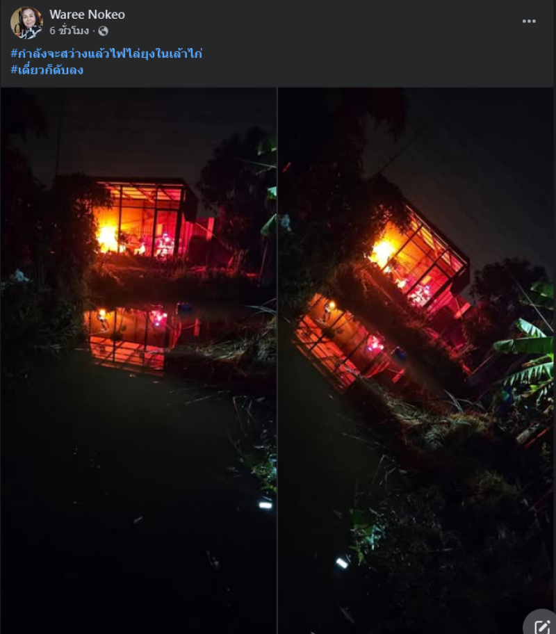 ทำเอาแฟนๆต่างเป็นห่วงและตกใจกันอย่างมากเมื่อ ยายหนิง คุณแม่ของนางเอกสาว ชมพู่ อารยา ได้โพสต์ภาพเล้าไก่ผ่านทางเฟซบุ๊คส่วนตัว Waree Nokeo พร้อมเขียนแคปชั่นว่า #กำลังจะสว่างแล้วไฟไล่ยุงในเล้าไก่ #เดี๋ยวก็ดับลง