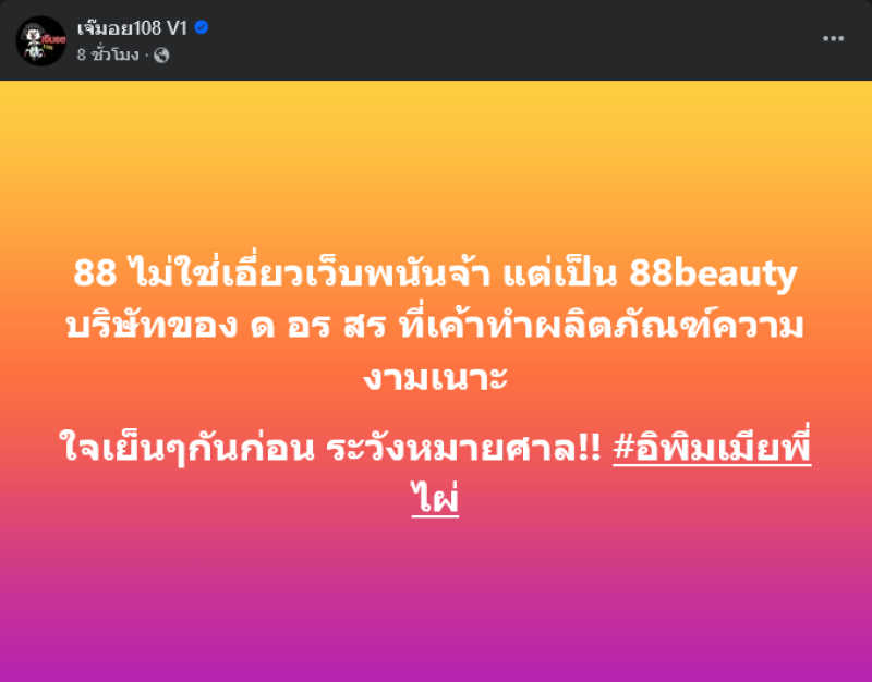 88 ไม่ใช่เอี่ยวเว็บพนันจ้า แต่เป็น 88beauty บริษัทของ ด อร สร ที่เค้าทำผลิตภัณฑ์ความงามเนาะ ใจเย็นๆ กันก่อน ระวังหมายศาล!! #อิพิมเมียพี่ไผ่