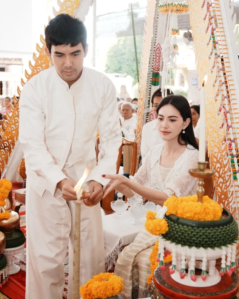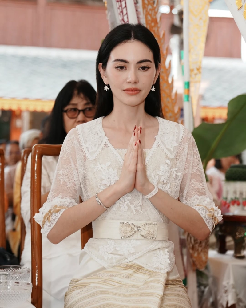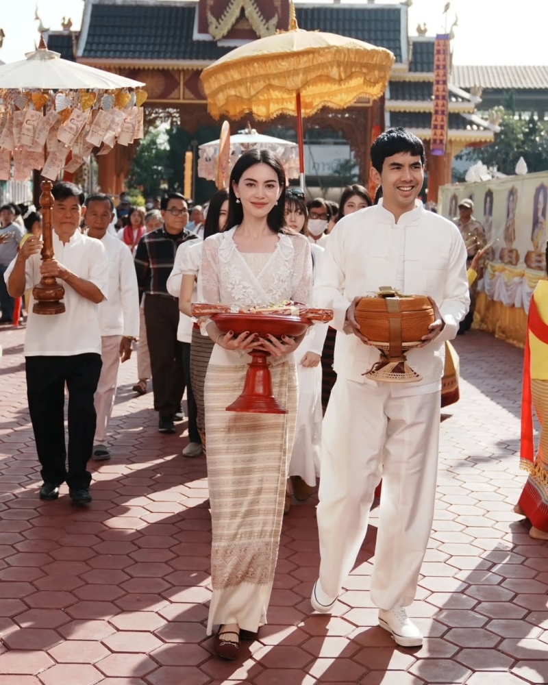 ก่อนเผยว่า เป็นการทอดผ้าป่าที่มีความสุขมากๆ อีกทั้ง ยังได้รวบรวมเงินซื้อที่ดินเพื่อสร้างศูนย์ปฏิบัติธรรม ซึ่งนี่เป็นความตั้งใจของแฟนหนุ่มของตน อย่าง เต๋อ พร้อมกล่าวเสริมว่า เขามาชวนเรา เราก็เลยได้มีโอกาสไปร่วมจอยด้วยกัน เลยปิดงบให้ได้ประมาณไร่ 2 งาน ตั้งแต่ปีที่แล้ว ซึ่งตนดีใจมากๆที่พี่เต๋อชวนใหม่ไปทำบุญ ตั้งแต่พี่เต๋อบวช ก็พาหนูเข้าสายธรรมมะด้วยการชวนทำบุญเข้าวัดบ่อยมากขึ้น