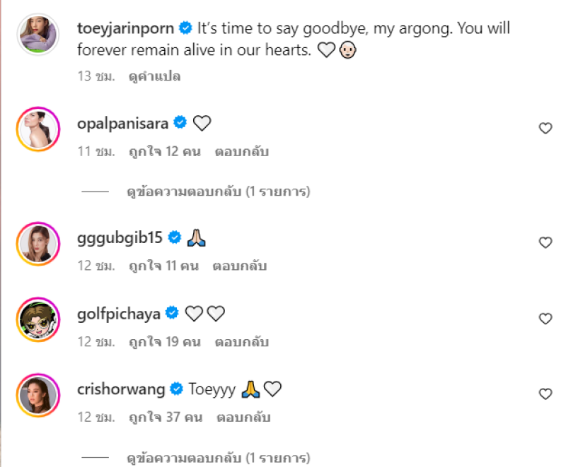 เรียกได้ว่า เป็นอีกหนึ่งนางเอกมากความสามารถ อย่าง เต้ย จรินทร์พร ที่มีผลงานในวงการมานับไม่ถ้วน ล่าสุด เต้ยได้ออกมาแจ้งข่าวเศร้าผ่านทางอินสตาแกรม โดยได้ระบุข้อความว่า It’s time to say goodbye, my argong. You will forever remain alive in our hearts. (ถึงเวลาที่ต้องบอกลากันแล้ว ,อากงของฉัน คุณจะยังคงอยู่ในใจของเราตลอดไป)