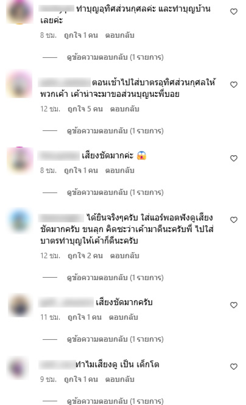 ท่ามกลางแฟนๆต่างเข้ามาคอมเมนต์ถึงเสียงปริศนากันอย่างมาก อาทิ ทำบุญบ้านยังครับ,น่ากลัวอ่าน้อง,ทำบุญอุทิศส่วนกุศลค่ะ และทำบุญบ้านเลยค่ะ,เสียงชัดมากกครับพี่,ตอนเช้าไปใส่บาตรอุทิศส่วนกุศลให้พวกเค้า เค้าน่าจะมาขอส่วนบุญนะพี่บอย เป็นต้น