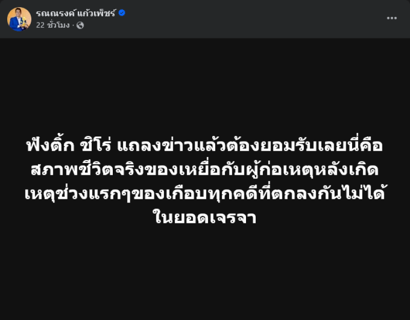 ซึ่งทางด้าน ทนายรณณรงค์ แก้วเพ็ชร์ ได้ออกมาโพสต์ข้อความถึงประเด็นดังกล่าวผ่านเฟซบุ๊ก รณณรงค์ แก้วเพ็ชร์ ระบุว่า ฟัง ติ๊ก ชิโร่ แถลงข่าวแล้วต้องยอมรับเลยนี่คือสภาพชีวิตจริงของเหยื่อกับผู้ก่อเหตุหลังเกิดเหตุช่วงแรกๆของเกือบทุกคดีที่ตกลงกันไม่ได้ในยอดเจรจา