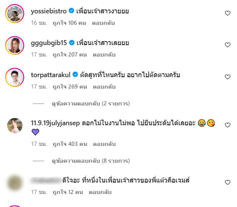 ท่ามกลาง เพื่อนๆและแฟนๆต่างเอ็นดู และเข้ามาคอมเมนต์กันเพียบ