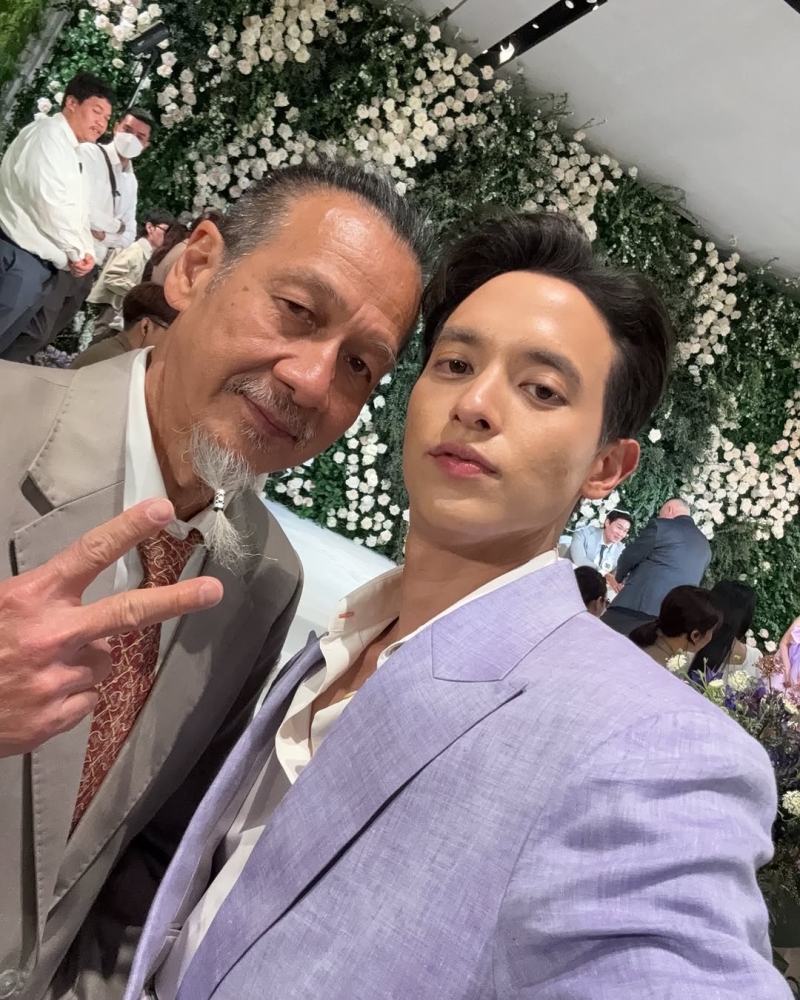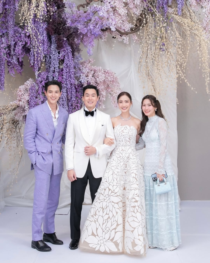 โดยงานนี้ด้านเพื่อนทางฝั่งเจ้าสาว ต่างพร้อมใจนัดกันใส่สีม่วง เนื่องจากเจ้าสาวชอบสีม่วงมากๆ ซึ่งก็ทำเอาด้านพระเอกหนุ่ อย่าง เจมส์จิ ถึงกับต้องออกมาเล่าถึงที่มาชุดสูธสีม่วงให้ฟังกันเลยว่า แท้จริงตอนแรกที่ตนเห็นผ้าไม่ได้เป็นสีนี้ เป็นสีที่ออกไปทางน้ำเงิน แต่พอมาเห็นชุดก่อนไปงาน คือสีม่วงที่ม่วงแบบม่วงเลย ก่อนจะเผยความรู้สึกในใจว่า ไม่รักจริงไม่กล้าออกจากบ้านแน่ ทั้งนี้ หนุ่มเจมส์จิ ยังได้กล่าวคำอวยพรปิดท้ายว่า Congratulations ครับ ซึ่งก็ต้องบอกเลยว่า งานนี้ทำเอาเหล่าชาวเน็ตต่างพากันหัวเราะชอบใจ เอ็นดูหนุ่มเจมส์จิกับยกใหญ่กันเลยล่ะค่ะ