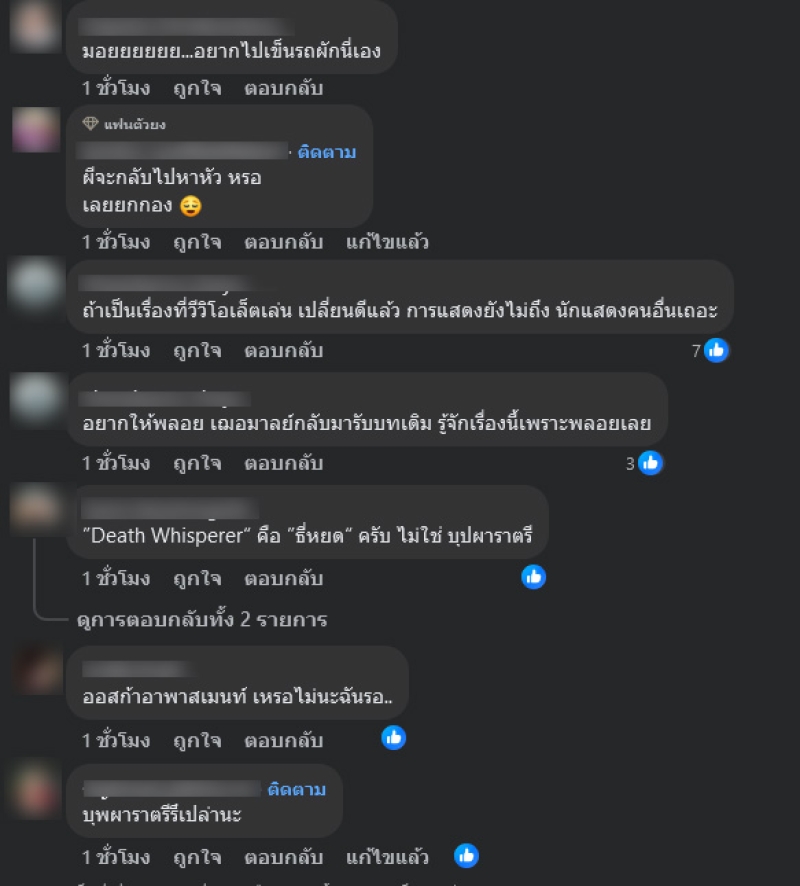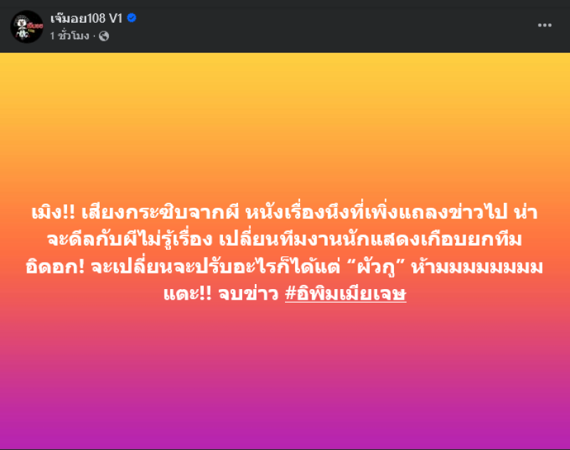 เรียกได้ว่าทำเอาแฟนๆละครที่ตั้งตารอต่างงงกันอย่างมากเมื่อล่าสุดทางด้านเพจ เจ๊มอย108 V1 ได้ออกมาโพสต์ข้อความเปิดประเด็นเล่าว่า เมิง!! เสียงกระซิบจากผี หนังเรื่องนึงที่เพิ่งแถลงข่าวไป น่าจะดีลกับผีไม่รู้เรื่อง เปลี่ยนทีมงานนักแสดงเกือบยกทีม อิดอก! จะเปลี่ยนจะปรับอะไรก็ได้แต่ ผัวกxู ห้ามมมมมมมม แตะ!! จบข่าว
