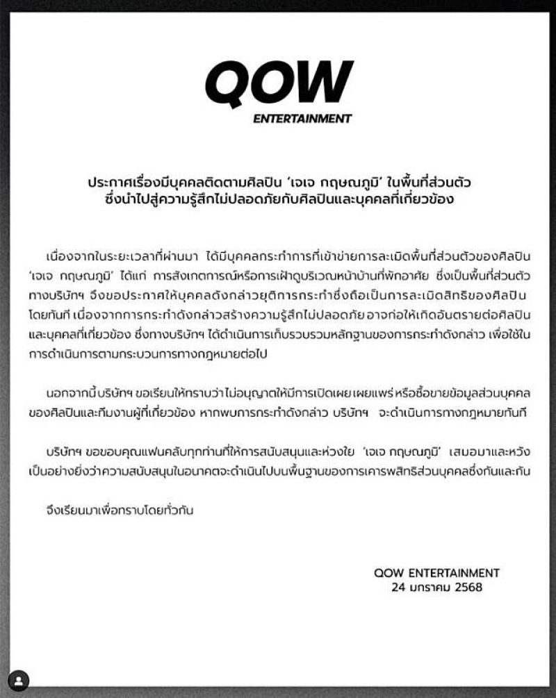 ก็ต้องบอกเลยว่า ทำเอาแฟนๆหลายคนเป็นห่วงไม่น้อยเลยทีเดียว สำหรับกรณี ที่ด้านนักแสดงหนุ่มมากฝีมือ อย่าง เจเจ กฤษณภูมิ ที่ล่าสุด ต้องพบเจอกับเหตุการณ์ที่ถูกบุกรุกถึงหน้าบ้านและละเมิดความเป็นส่วนตัว