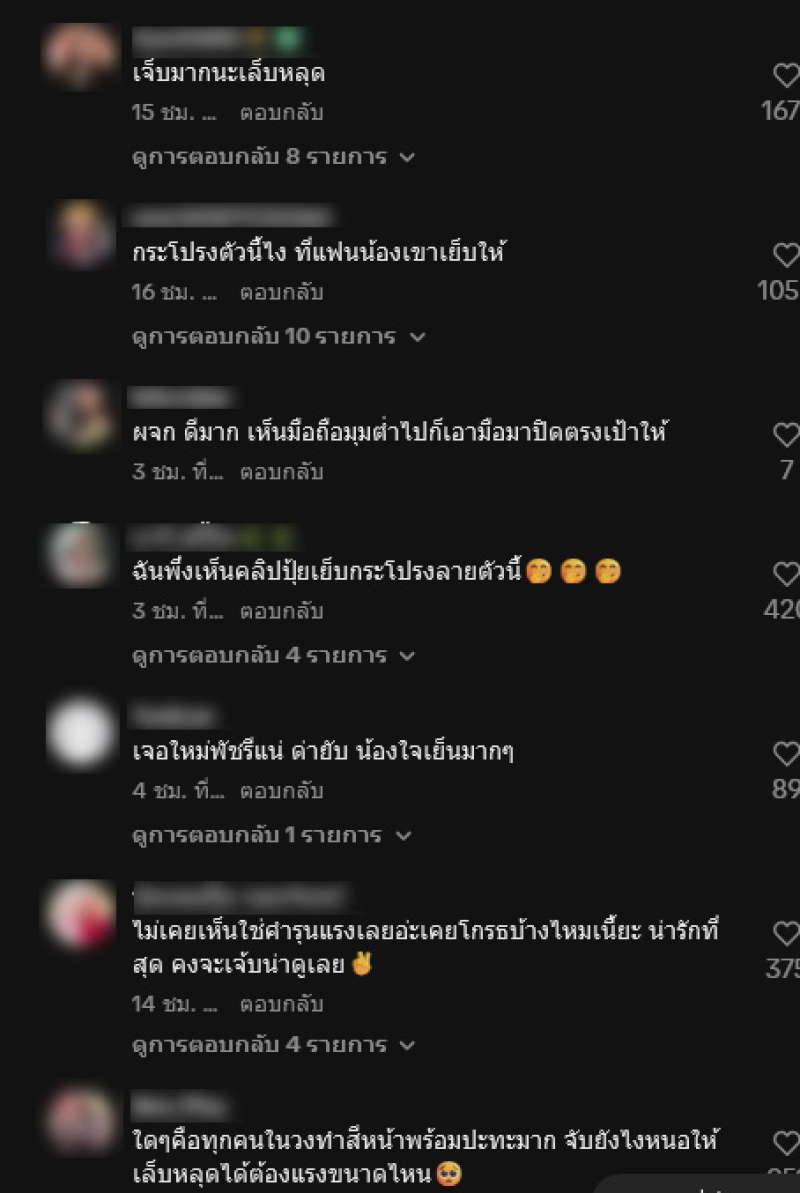 โดยมีคลิป TikTok ของผู้ใช้รายหนึ่งได้ออกมาโพสต์คลิปเหตุการณ์ ท่ามกลางแฟนคลับต่างเข้ามาคอมเมนต์กันอย่างมาก อาทิ เจ็บมากนะเล็บหลุด,ไม่เคยเห็นใช่คำรุนแรงเลยอ่ะเคยโกรธบ้างไหมเนี้ยะ น่ารักที่สุด คงจะเจ็บน่าดูเลย,เจ็บเด้อ เฮ็ดแฮงคัก,กระโปรงตัวนี้ ปุ้ยเป็นคนตัดให้,จับมือยังไงจนเล็บหลุด เป็นต้น