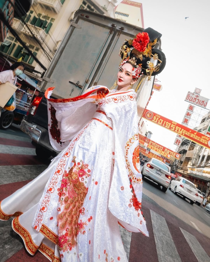 โดยคุณแม่ เป้ย ปานวาด ก็ขอประเดิม ด้วยการออกมาเสิร์ฟลุคฮองเฮาสีแดง ที่จัดเต็มทุกระเบียบนิ้ว ตั้งแต่เครื่องผม เครื่องประดับ ยันเครื่องแต่งกาย ที่เห็นแล้วก็ต้องบอกเลยว่าลุคนี้ขอปัดคะแนนให้สิบเต็มสิบกันเลยล่ะค่ะ ทั้งนี้ โลเกชั่น ที่เลือกถ่ายซ็ทภาพดังกล่าวนี้ ก็คือถนนเยาวราช กรุงเทพ นั่นเอง งานนี้พูดได้เต็มคำเลยว่า ทำเอานักท่องเที่ยวทั้งไทยและต่างชาติ ต่างพากันมองค้างตะลึงกันเป็นแถบๆกับออร่าความสวยปัง ที่เจิดจ้าจนแสบตากันเลยทีเดียว