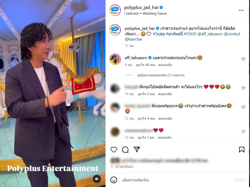 เรียกได้ว่า เป็นอีกคู่ที่แฟนๆต่างเชียร์มานาน และรอลุ้นอยู่ตลอด อย่าง แอฟ ทักษอร และ นนกุล เพราะเป็นอีกคู่ที่น่ารักและหวานมากๆ ซึ่งก่อนหน้านั้น ด้าน หนุ่ม กรรชัย ได้บอกแอฟว่าถ้าแต่งงานจะให้1ล้านเลยนั้นเอง ล่าสุด ทาง polyplus_jad_hai ได้เผยคลิปที่ เทปรายการ 3 แซ่บ ขณะที่แอฟกับนนกุลกำลบังเตรียมถ่ายรูปในรายการกัน