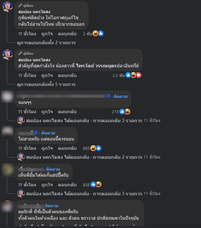 จากประเด็นที่ก่อนหน้านี้ อดีตพระมหาสมปอง ได้โพสต์ข้อความรัวๆ แบบ 3 วันติดๆ ล่าสุด สมปอง ได้เผยสาเหตุการโพสต์ข้อความรัวๆ 3 วันติดผ่านทางเฟซบุ๊คส่วนตัวสมปอง นครไธสง โดยระบุไว้ว่า เอาละเราสนุกกันมา 3 วันเเล้ว! อาจารย์เองต้องยอมรับว่าเปลี่ยนจากที่เก็บกดมาเป็นตัวของตัวเองอย่างจริงจัง เพราะที่ผ่านมารู้สึกว่ามันเหมือนฝืนธรรมชาติ ในสิ่งที่เราควรเป็น
