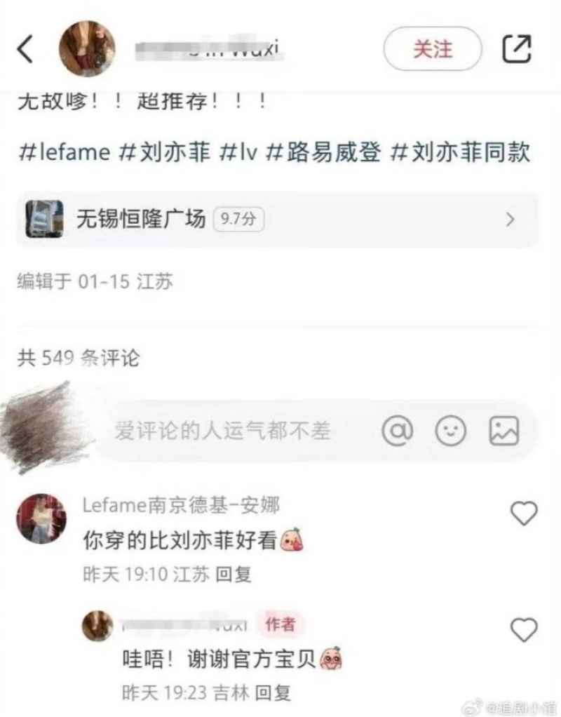 ก็ต้องบอกเลยว่า งานเข้าแบบจังๆ เมื่อพนักงานแบรนด์แฟชั่นสุดหรู แบรนด์หนึ่ง ในห้างหรูของเมืองหนานจิง ได้เผลอปากไว หลุดวิจารณ์หุ่นของ หลิวอี้เฟย นางเอกตัวท็อปแถวหน้าแดนมังกร ในทำนองว่า อ้วนกว่านิดหน่อย ในระหว่างกำลังตอบลูกค้าในโซเชียล