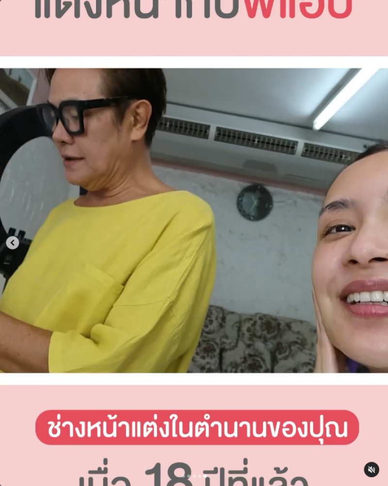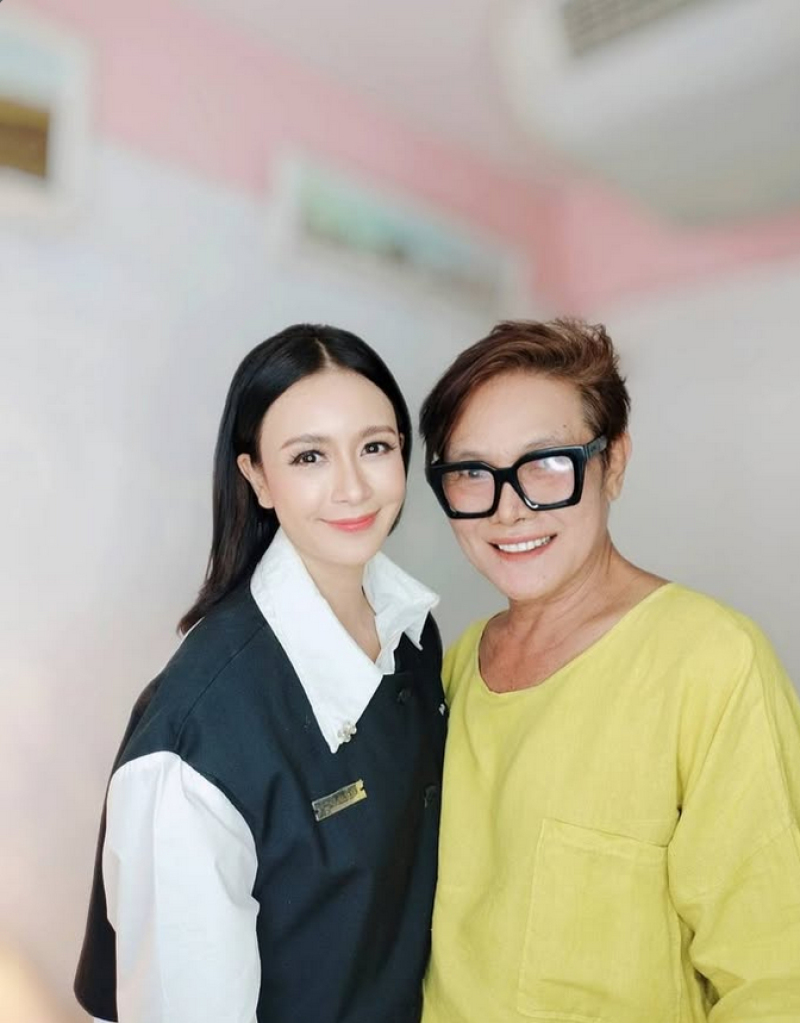 คุณแม่จับหน้ากันมาตั้งแต่อายุ 12 จนถึงตอนนี้ แต่งหน้ากันมาตลอด คุณแตนเป็นลูกค้าประจำกับที่นี้เชียร์กันทั้งสองคนพาไปประกวดเลยค่ะคุณแม่ เค้ารวมตัวกันต้องมีการลงประกวดอะไรสักอย่าง ส่งลูกสาวเข้าชิงมง เป็นคำกล่าวของคุณแม่แอ๊ปของพวกเรา จนได้เข้าวงการบันเทิง คุณแม่แอ๊ปผลักดันเข้าวงการในการประกวดทุกอย่างจริงๆ