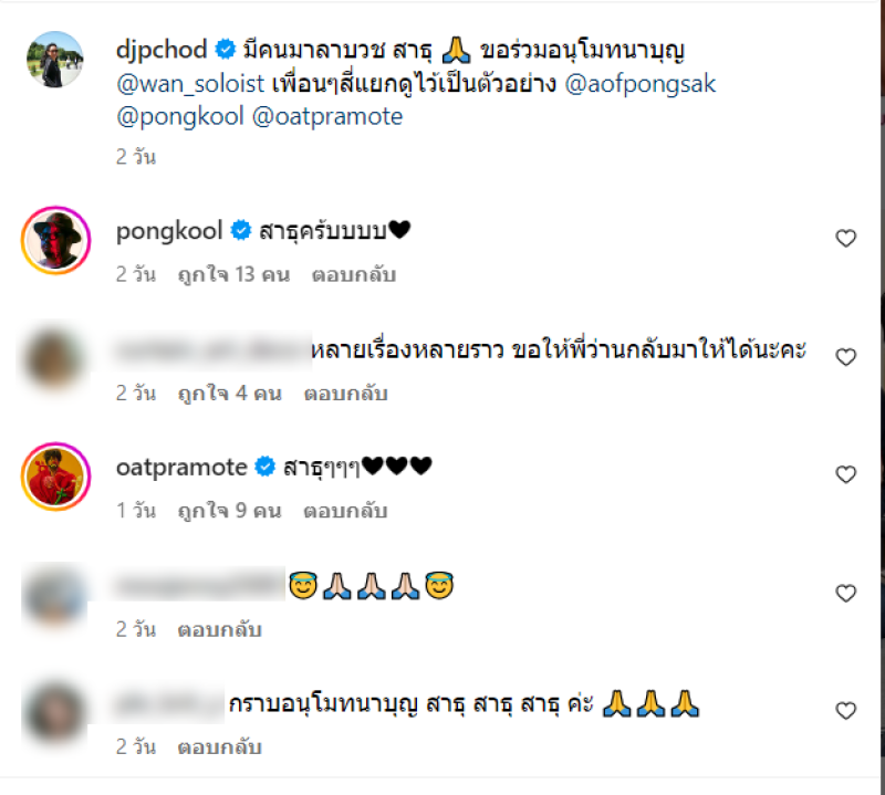ท่ามกลาง เพื่อนๆในวงการ และชาวเน็ตต่างเข้ามาร่วมอนุโมทนาบุญด้วยนั่นเอง