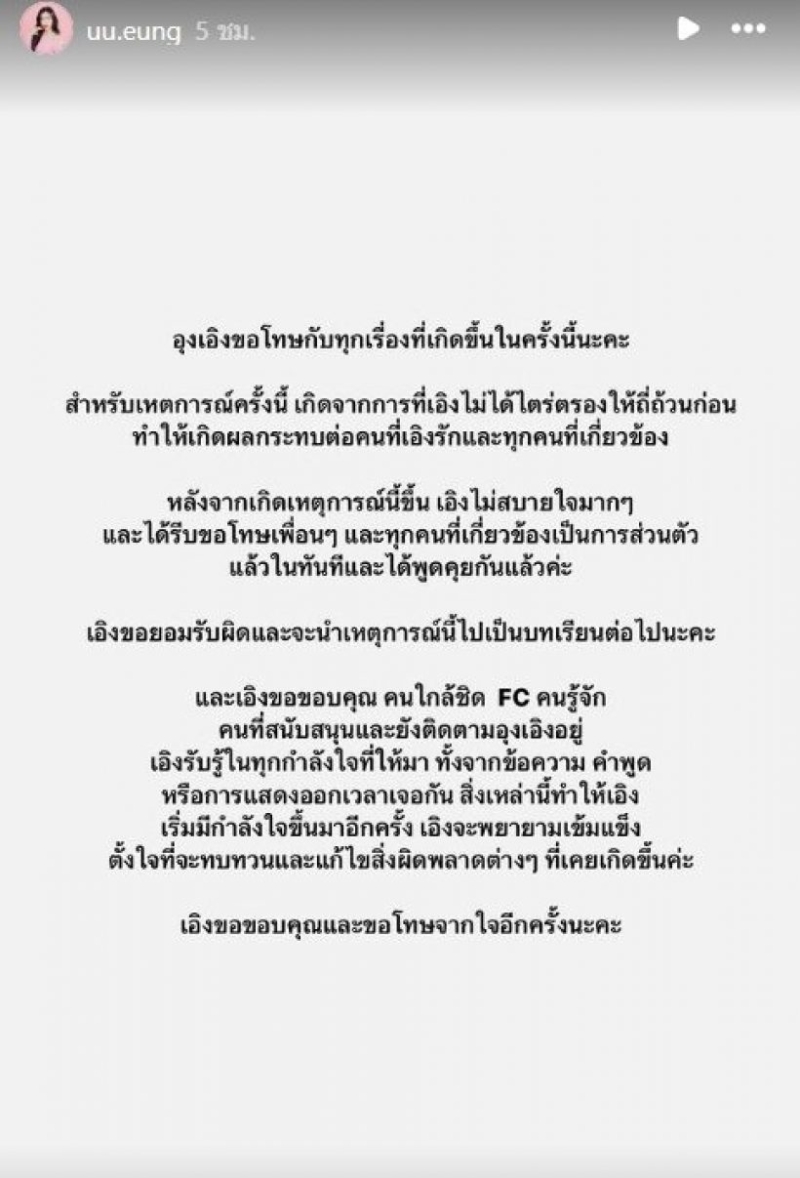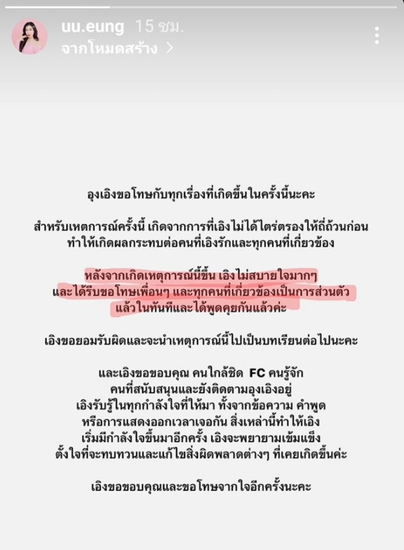 จากกรณีที่กำลังเป็นดราม่ามาต่อเนื่อง และดูท่าว่าจะไม่จบง่ายๆ ซึ่งก่อนหน้านั้น อุงเอิง ได้ออกมาโพสต์ขอโทษผ่านทางอินสตาแกรม ล่าสุด ซุง เพื่อนทาง สไปรท์ spd ก็ได้ออกมาไลฟ์อีกครั้ง ซึ่งทางวเพจดัง อย่าง อรรถรส ก็ได้สรุปให้ว่า
