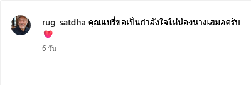 พร้อมเขียนแคปชั่นว่า สู้ๆนะครับคุณนาง จากท่านกงและคุณแบรี่ ต่อมาได้โพสต์คู่กับณิชาพร้อมระบุว่า คุณแบรี่ขอเป็นกำลังใจให้น้องนางเสมอครับ ล่าสุดแม่ยุ้ย คุณแม่ณิชา ได้เข้ามาคอมเมนต์ตอบกลับว่าขอบพระคุณ คุณแบรี่นะคะ