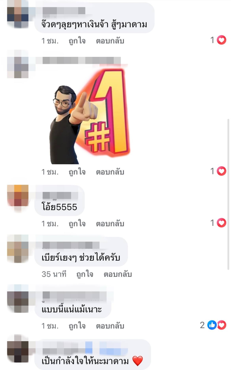 ทำเอาแฟนๆ หลายคนแห่เข้ามาคอมเมนต์กันอย่างล้นหลาม เช่น จ๊วดๆ ลุยๆ หาเงินจ้า สู้ๆ มาดาม , โอ้ย5555 , เบียร์เยงๆ ช่วยได้ , แบนนี้ แน่แม้เนาะ , เป็นกำลังใจให้นะมาดาม เป็นต้น