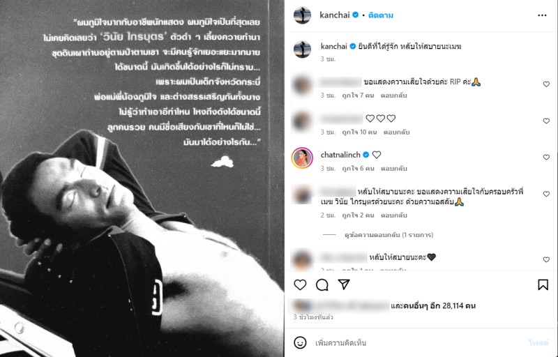 ล่าสุด ด้านหนุ่ม กรรชัย ได้โพสต์อาลัยถึง เมฆ วินัย ว่า ยินดีที่ได้รู้จัก หลับให้สบายนะเมฆ
